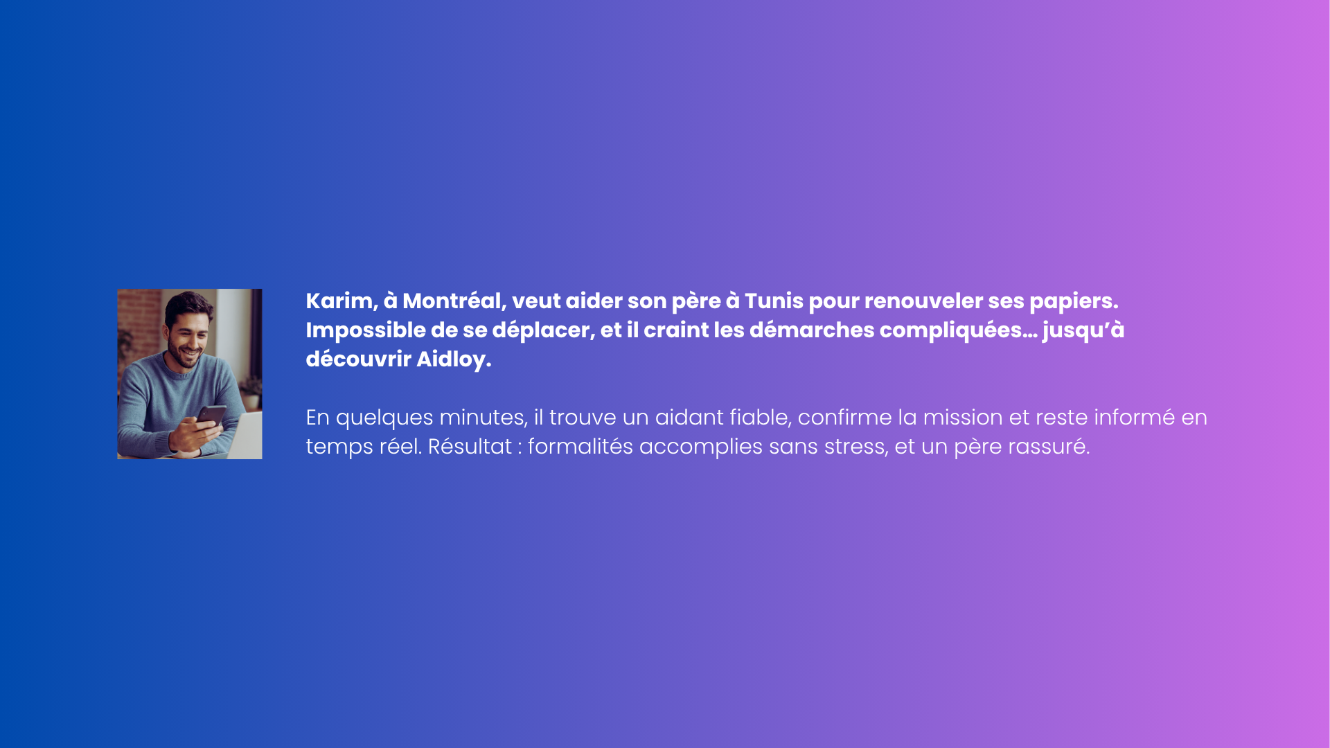 Aidloy est la première application pensée pour la diaspora, permettant d’aider ses proches restés au pays dans leur quotidien comme si vous étiez à leurs côtés. Offrez-leur votre soutien en quelques clics, où que vous soyez dans le monde.