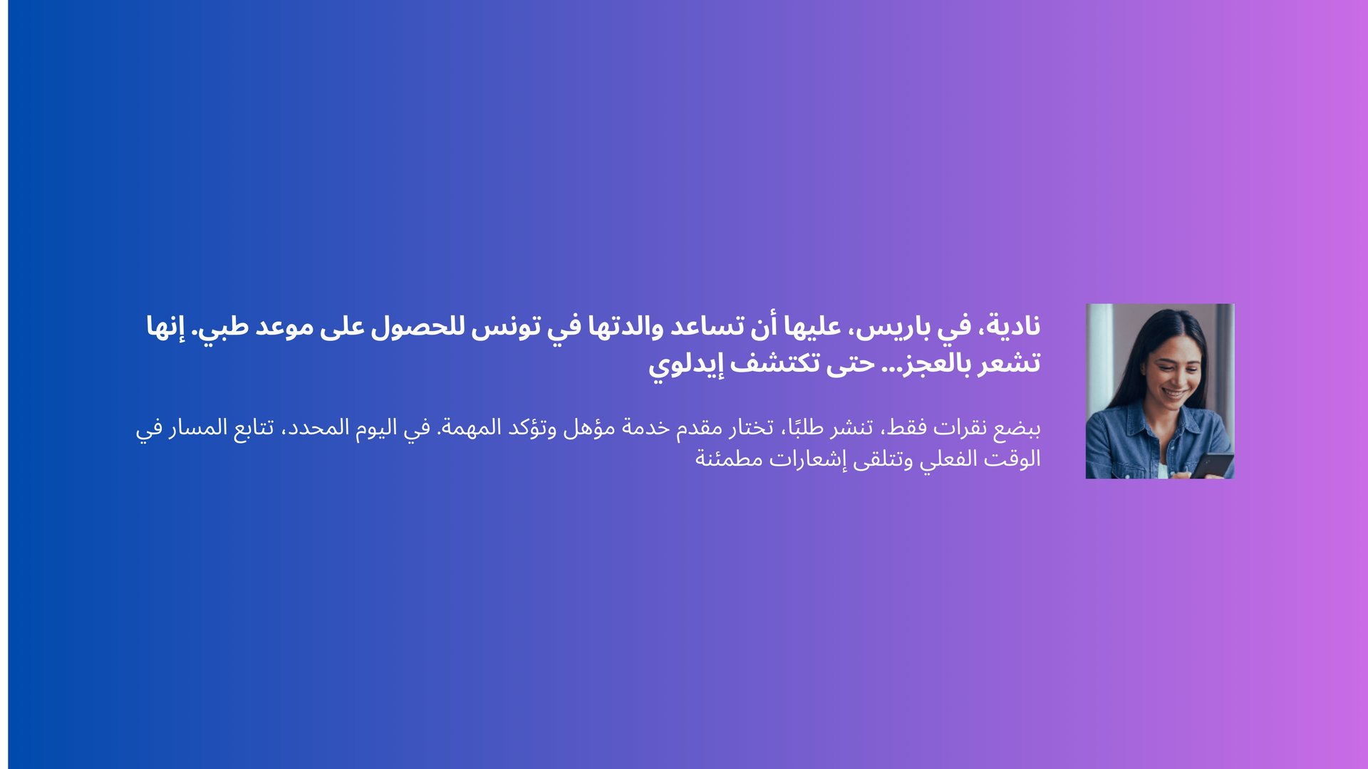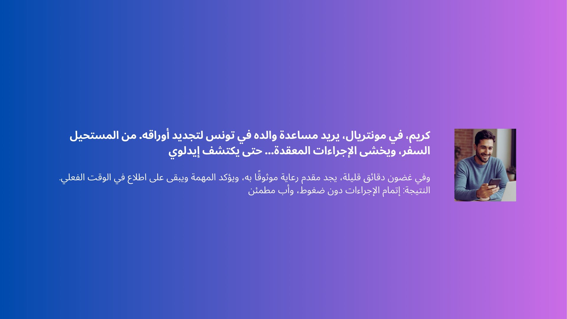 هي أول تطبيق مُصمم خصيصًا من أجل الجالية، تتيح لكم مساعدة أحبائكم الباقين في الوطن في حياتهم اليومية وكأنكم بجانبهم. قدّموا لهم دعمكم ببضع النقرات، أينما كنتم في العالم.